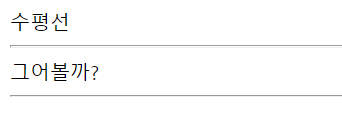 문단 내에서 내용 전환이 필요할 때 수평선을 삽입해서 시각적 효과로 문단을 구분할 수 있다. 수평선을 그어주는 태그는 <hr>이다. 종료 태그는 없다.