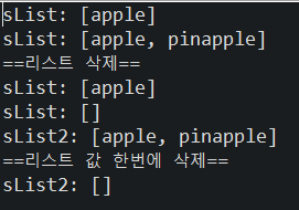 sList2.clear(); //clear() 리스트 값 한번에 삭제