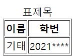 <tbody><tr><td>기태</td><td>2021****</td></tr></tbody>