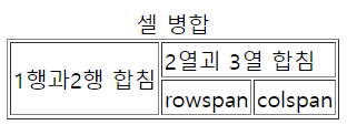 <td rowspan="2">1행과2행 합침</td><td colspan="2">2열괴 3열 합침</td>