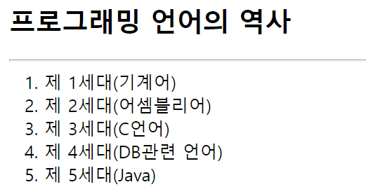 - 순서가 있는 리스트(ordered list) <ol></ol>