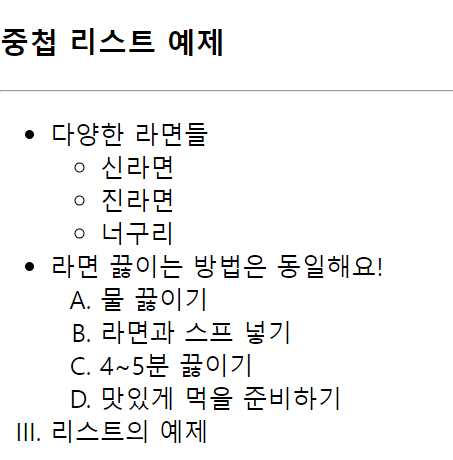 <li type="I">리스트의 예제</li>