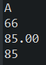 - int B 마찬가지로 'B'를 정수 값으로 바꾸면 66이 된다 (유니코드 참조) 그러므로 B에 66이 저장된다.