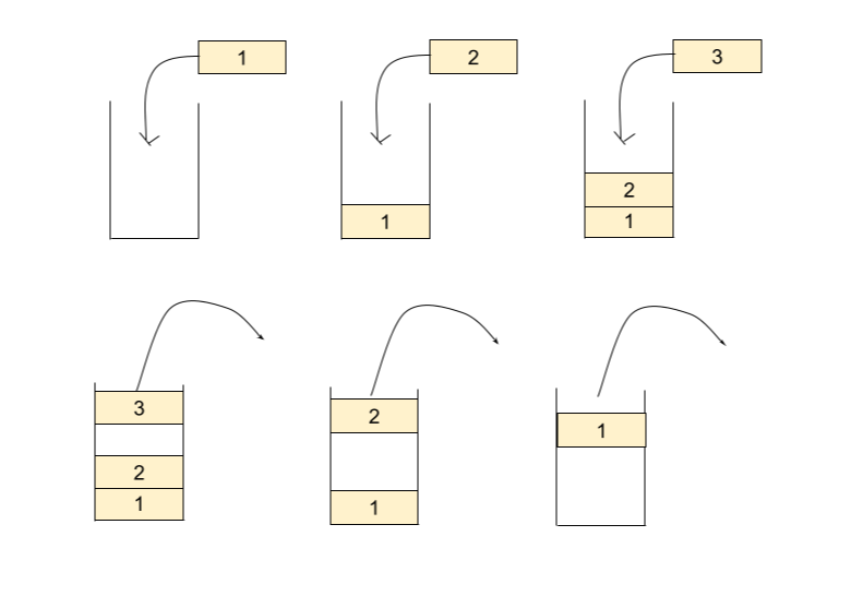 스택은 어떠한 데이터가 차곡차곡 쌓이고 나갈 때도 위에서부터 나간다.