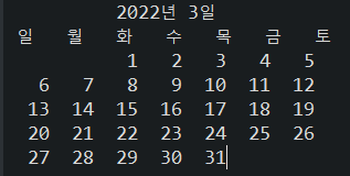 System.out.print((i < 10) ? " " + i : " " + i); // 1~9일은 공백 한 칸 더 두 자리수부터 공백 2칸