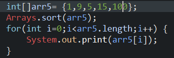 arr5는 질서 없이 값이 난해하게 정렬되어 있다. Arrays.sort()로 오름차순으로 정렬이 되어서 출력으로 1,5,9,15,100이 출력